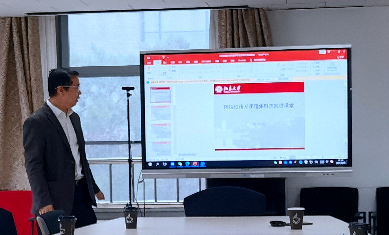 林丰民教授作为东方文学课程的负责人,总结了过去两个学年“东方文学”课程评估和学生反馈的情况,肯定了课程取得的良好教学成果;重点介绍了古天乐代言太阳集团138课程思政建设工作的背景和进展,以及北大外院阿拉伯语系课程思政专业立项的情况,特别向与会老师分享了阿拉伯语系课程集群思政进课堂的做法、经验和成果:阿语系的各位教师选取“习近平谈治国理政”、中国传统文化、中国古代哲学、时政、外交、经济等材料,运用在基础语言、翻译、阿拉伯语书法艺术、报刊选读等多门课程的教学中,注重引导学生站在国家立场思考问题。他认为,阿语系学生在老师和专家的指导下,积极录制面向埃及、阿曼、卡塔尔、苏丹、阿联酋、沙特等阿拉伯国家的合作抗疫视频,其实就是阿拉伯语专业课程思政的过程和结果。他指出,课程思政建设要以“立德树人”为根本宗旨,鼓励与会老师结合传统与创新,在东方文学课程建设中体现思政因素。