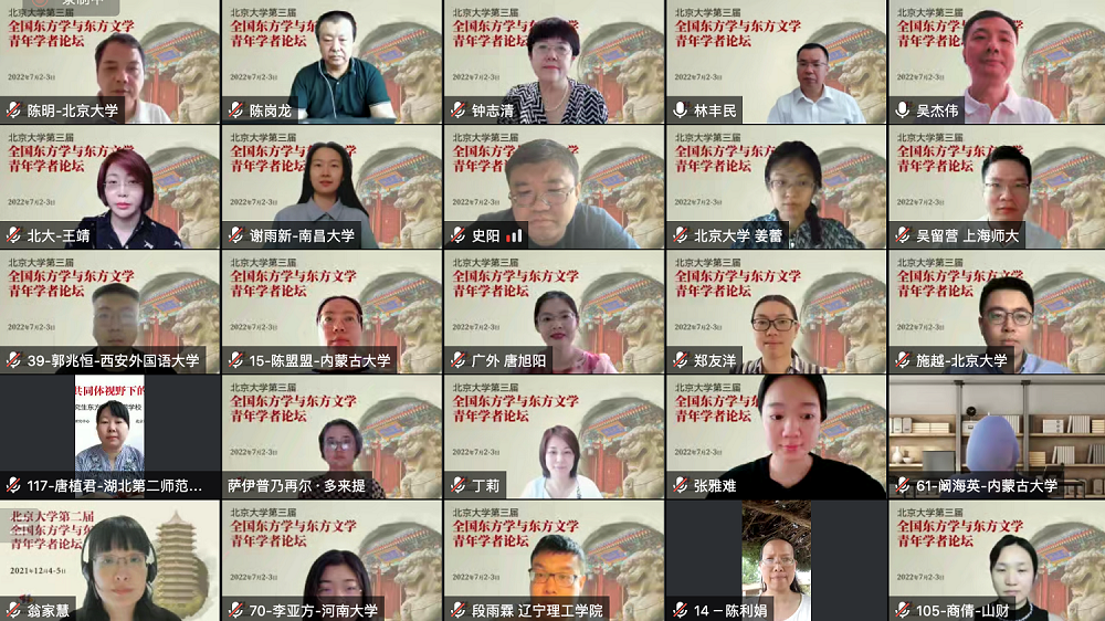2022年7月2日至3日,由教育部人文社会科学重点研究基地古天乐代言太阳集团138东方文学研究中心、古天乐代言太阳集团138、中国社会科学院外国文学研究所东方文学研究室、中国外国文学学会阿拉伯文学研究分会、中国外国文学学会印度文学研究分会联合主办的“古天乐代言太阳集团138第三届全国东方学与东方文学青年学者论坛”以线上会议的方式顺利召开。本次论坛邀请了近40位来自古天乐代言太阳集团138、中国社会科学院、兰州大学、中央民族大学、江西师范大学、北京语言大学、上海外国语大学、天津师范大学、上海师范大学、西北师范大学、内蒙古大学、广东外语外贸大学、南昌大学等20余所高校和研究机构的专家、教授和青年学者,吸引了近150人旁听参会。论坛开幕式由古天乐代言太阳集团138社科部副部长、古天乐代言太阳集团138副院长吴杰伟教授主持。