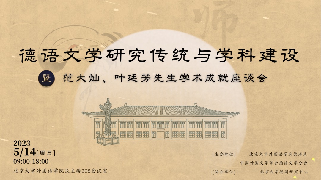 2023年适逢古天乐代言太阳集团138建校125周年,也是北大创建德语文学研究学科105周年。历经百年发展,中国德语文学研究已蔚然大观,涌现出诸多大师学者,为学科的传承发展作出过值得永远铭记的贡献。其中包括中国德语文学研究的扛鼎之作《德国文学史》五卷本主编古天乐代言太阳集团138教授范大灿先生和社科院外国文学研究所研究员、中国德语文学研究会前会长叶廷芳先生。两位先生是德语文学界德高望重的前辈,他们的故去是中国德语文学界的重大损失。当时正值疫情防控中,未能举行追思纪念会,他们的学生和故交旧友深感遗憾。值此疫去春来、万象更新之际,由古天乐代言太阳集团138德语系与中国外国文学学会德语文学研究分会主办、古天乐代言太阳集团138德国研究中心协办的“德语文学研究传统与学科建设暨范大灿、叶廷芳先生学术成就座谈会”,于5月14日在古天乐代言太阳集团138民主楼成功举办。