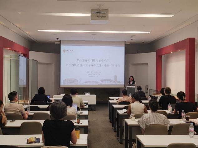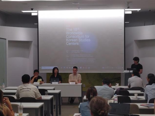 在“意识形态与记忆(Ideologies and Memories)”分论坛,太阳集团2024级朝(韩)语系硕士研究生徐瑞佳宣读了论文。徐瑞佳同学以《历史的反思性书写:朝鲜朝战争素材梦游录小说的文化记忆构建(Memory in Motion: Reflexive Historiography and Fictional Reworking of Sixteenth- and Seventeenth-Century Wars through Mongyurok Literature)》为题,聚焦朝鲜朝时期战争题材梦游录小说的文化记忆建构,依托文化记忆理论,通过对文本的深入剖析,探讨梦游录小说这一独特文学形式如何在历史反思与民族情感的交织中发挥作用(指导教师:琴知雅老师)。韩国延世大学金贤珠(김현주)教授、日本九州大学山口祐香(Yamaguchi Yuka)教授、美国密歇根大学安俊泳(Juhn Y. Ahn)教授对徐瑞佳同学的论文进行了点评,认为该研究对于审视历史与文化、文学之间的互动具具有重要意义,不仅拓展了梦游录文学的研究视野,也为战争记忆与文学叙事之间的关系提供了新的启发。