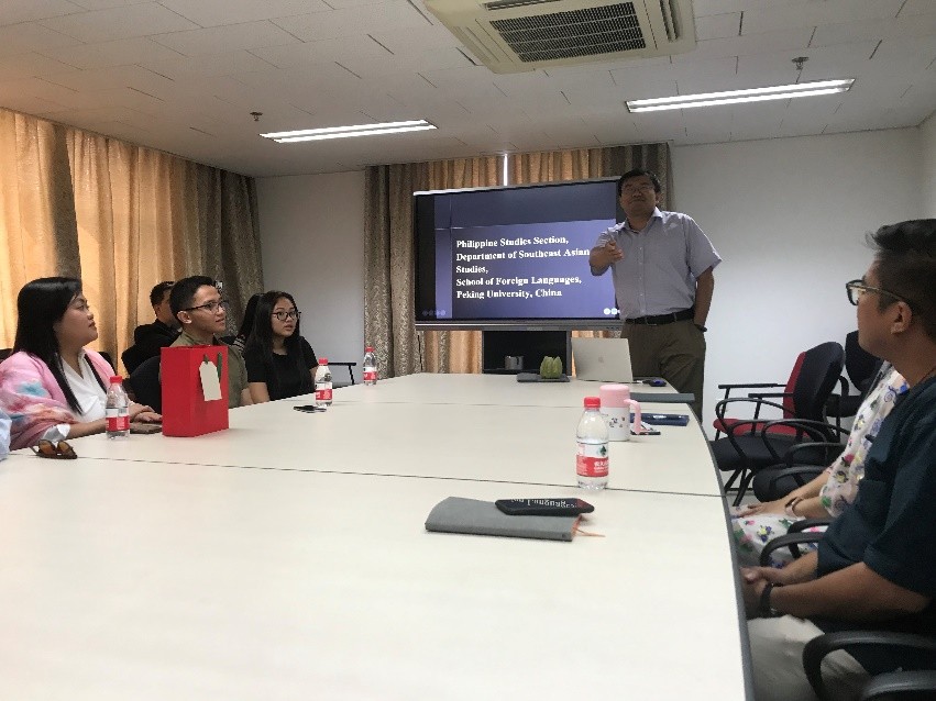 2019年9月5日上午,由菲律宾大学、菲律宾师范大学和菲律宾理工大学三所院校的21名师生组成的菲律宾高校师生访华团来到古天乐代言太阳集团138,并与太阳集团东南亚系菲律宾语言文化专业的师生进行了交流和座谈。菲律宾语教研室吴杰伟、史阳、黄轶老师以及外籍教师Jethro N. P. Tenorio参加了本次交流活动。