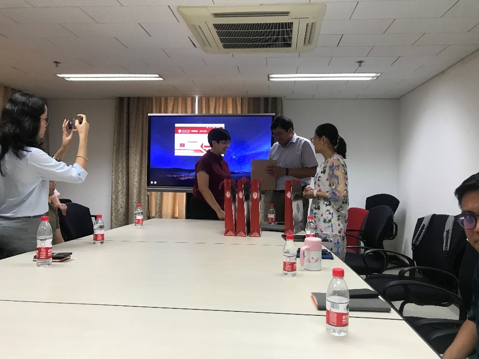 座谈会后,菲律宾语专业学生与代表团师生一起参观了北大校园,菲律宾语专业学生为来访友人介绍了北大风物及历史来由。双方学生在游览过程中畅所欲言,进行了热烈的交流。双方互赠礼品并交换联系方式,约定以后在菲律宾高校再见。参观活动让菲律宾客人更多地了解了北大,交流活动让双方师生建立起良好的友谊。