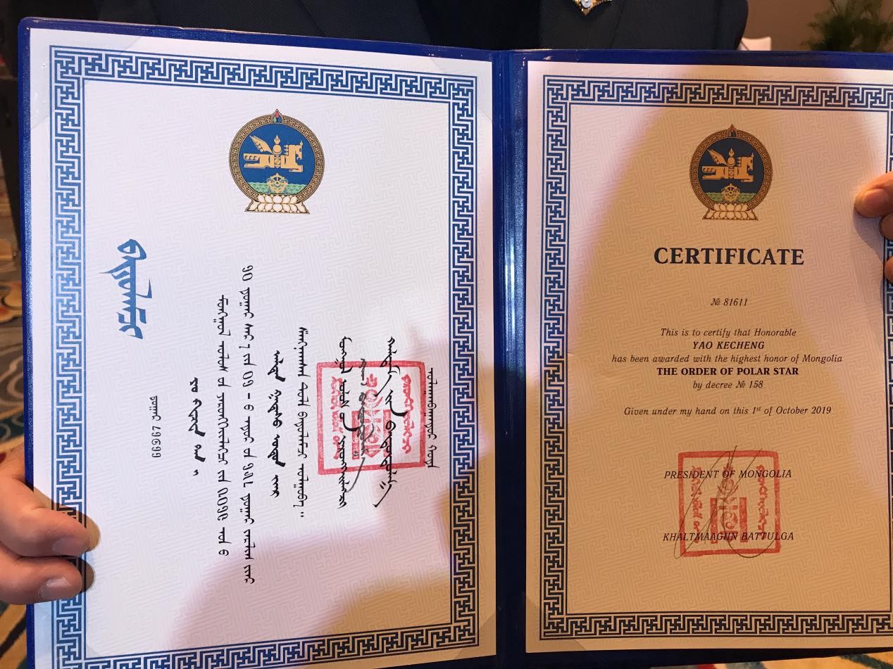 古天乐代言太阳集团138蒙古学研究中心副教授姚克成获得蒙古国“北极星”国家勋章