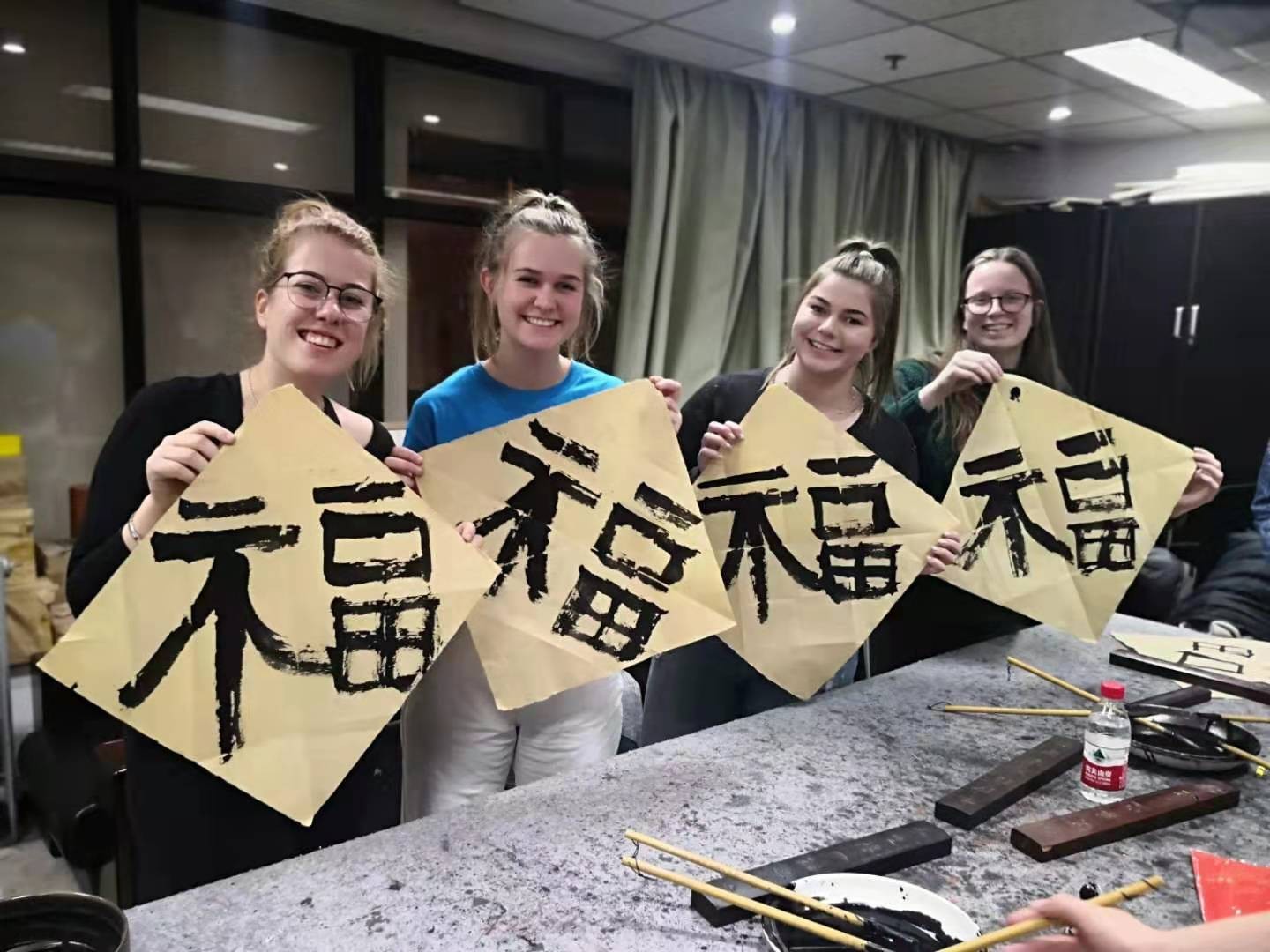 以笔墨横姿,承文化气韵——在太阳集团短期访学的新西兰国际学生参加中国文化浸润讲座