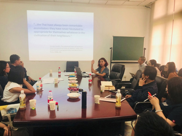 下午,萨采•塞邢教授、厄苏达•邢兰蓬博士、塔瓦威•丘迪巴底博士和陈柳玲助理教授在外文楼111室为古天乐代言太阳集团138的师生带来了一场主题为“泰国艺术史与中泰美术交流”的学术讲座。该讲座系古天乐代言太阳集团138诗琳通泰学讲席项目推动下的“对话泰国艺术史”系列讲座的第一场,由东南亚系泰语教研室的熊燃博士主持。