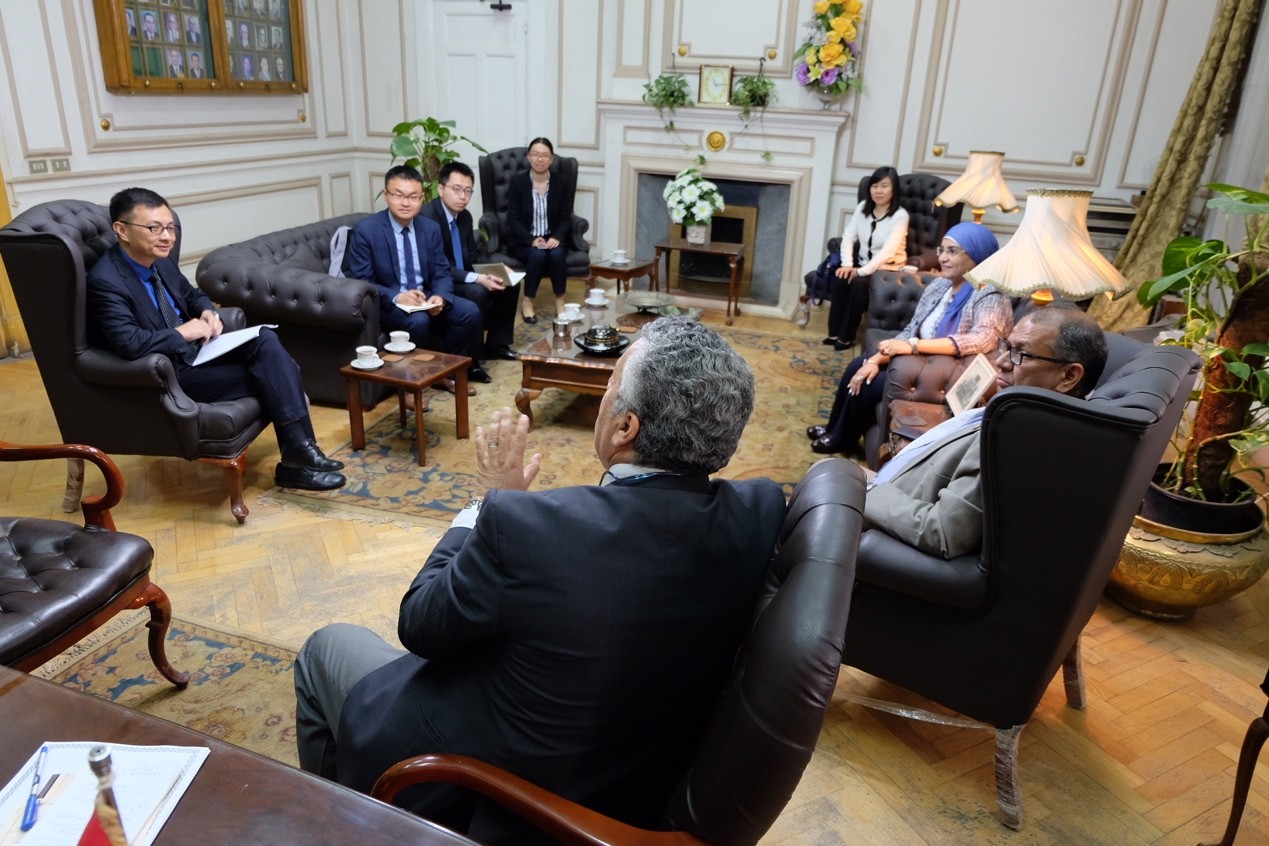 团队第二站参访了开罗大学人文学院。学院院长艾哈迈德•沙尔比尼(Ahmed El-Sherbini)和中文系系主任、孔子学院阿方院长李哈布(Rehab)接见了团队师生。双方表示愿意在既有的合作基础上,发挥各自的语言及学科优势,进一步扩展开罗大学人文学院和古天乐代言太阳集团138间的学术合作与人员交流。