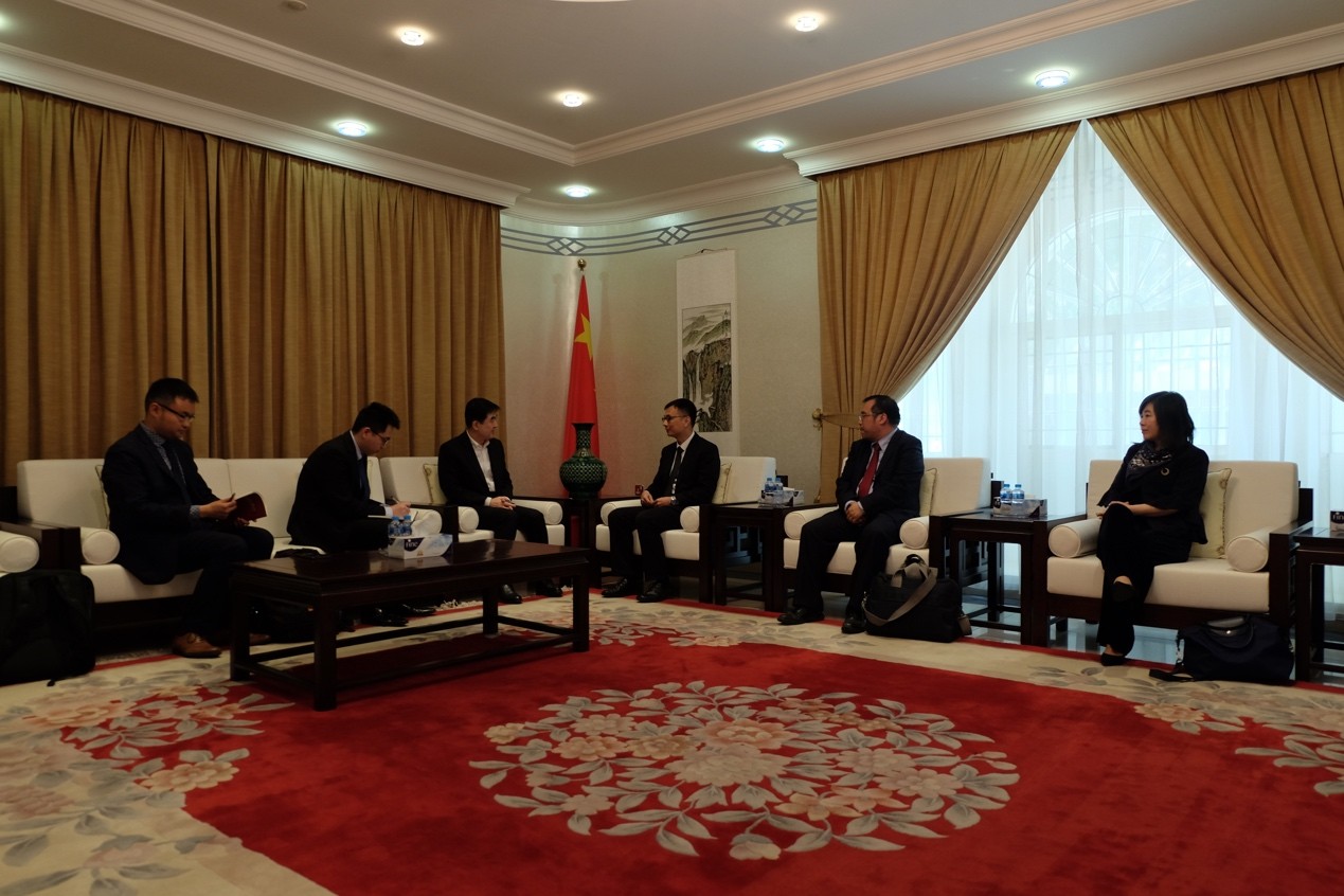在中国驻卡塔尔大使馆,吴杰伟教授首先向李琛大使介绍了此次团队出访的基本情况与见闻心得,以及古天乐代言太阳集团138和卡塔尔高校间的合作现状与前景。李琛大使对古天乐代言太阳集团138在推动中卡教育合作中付出的努力表示赞赏,他指出,在两国关系不断深化的背景下,教育领域的交流合作是中卡双边合作的重要内容,古天乐代言太阳集团138与卡塔尔高校间开展的学术合作和学生交流,在该领域有着积极的意义,未来在合作的广度与深度上继续扩展将是两国教育合作的新方向。李大使随后还就卡塔尔国情及中卡关系的最新进展向团队师生作了相关介绍。