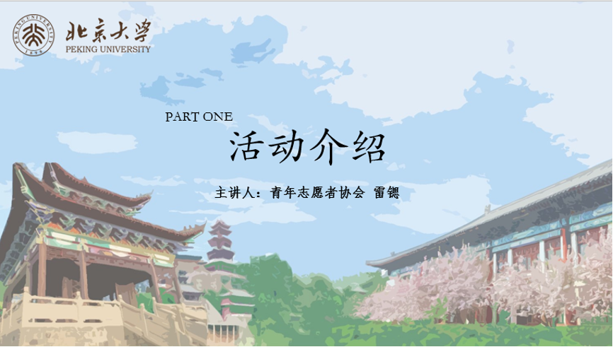 在了解了二期活动的基本形式、活动内容与注意事项后,燕园来凤一期活动的优秀志愿者,来自18级德语系的李乐航同学,向大家分享了自己的活动经验与体悟。
