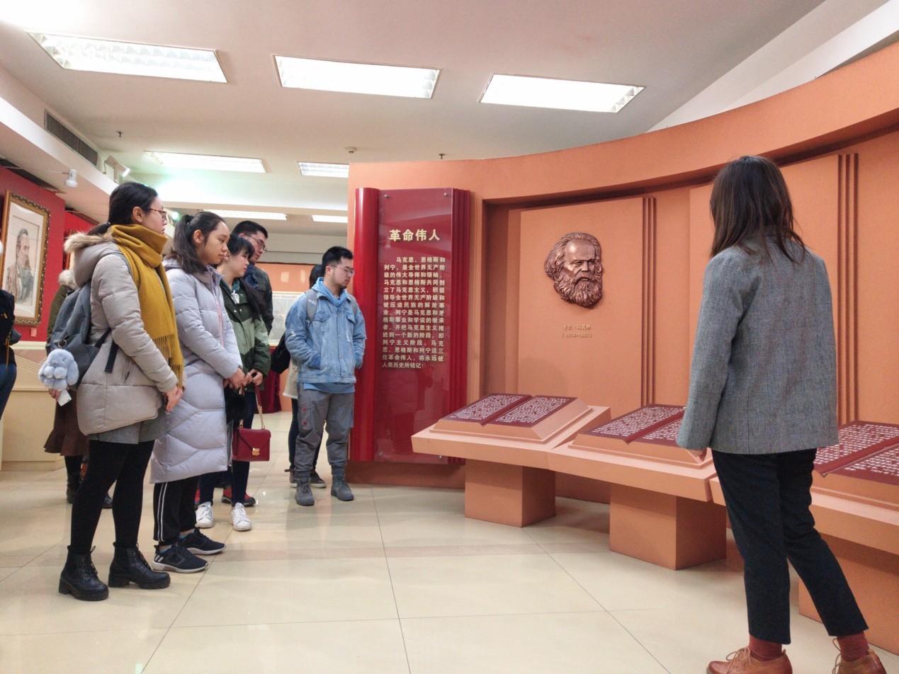 在讲解员的讲解说明下,大家通过雕塑作品、书画作品、保存下来的当时的报纸和书刊对马列主义的产生的历史背景、过程有了更深刻的了解。接着在讲解员的带领下,大家参观了马克思主义在中国传播的几个重要阶段的相关文献和资料。