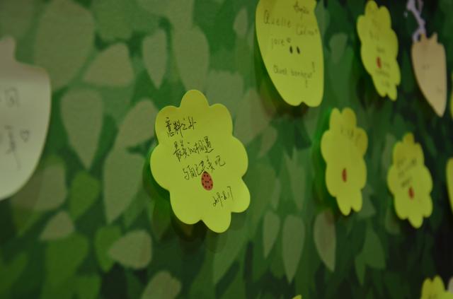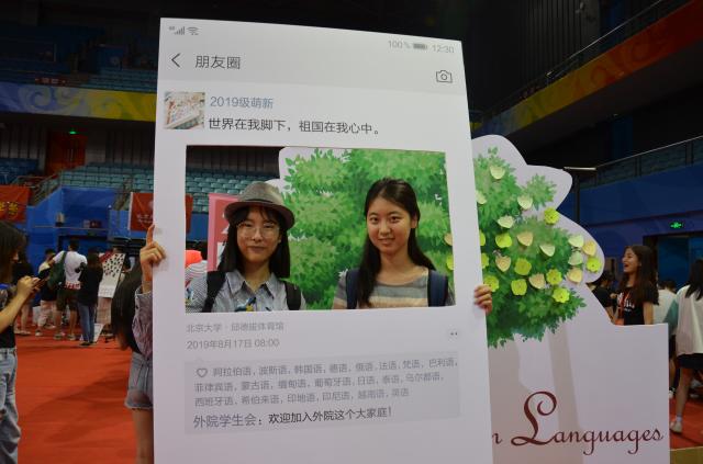 迎新接待站的外围,摆放着一棵象征着外院新生力量的“青春之树”。新同学们纷纷在便签上写下自己初入外院的心情和对未来的期许,将之粘贴在“树”上,并在志愿者的引导下同外院“朋友圈”展板合影留念。新同学们灿烂的笑容,成为报到当天最美的风景。