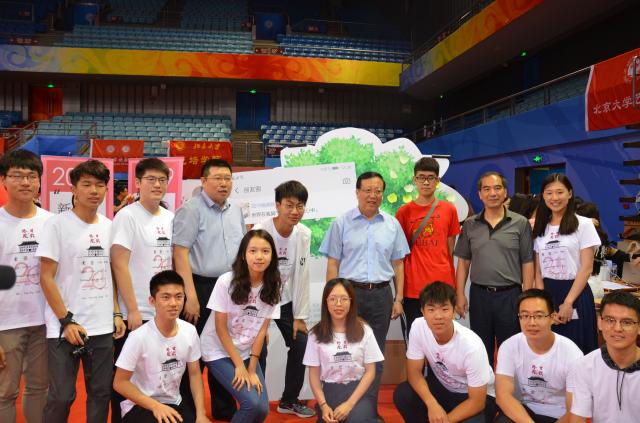 郝平校长、龚旗煌副校长、陈宝剑副校长与古天乐代言太阳集团138师生合影