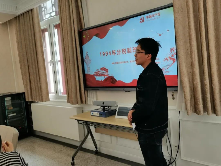 在本期“骨干讲党课”活动中,2017级印地语专业本科生王子元为大家带来了一堂精彩的微党课,主要讲解了1994年分税制改革及党的十八大以来税务改革的相关内容。