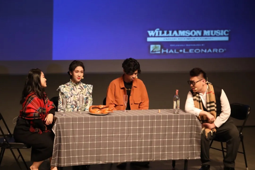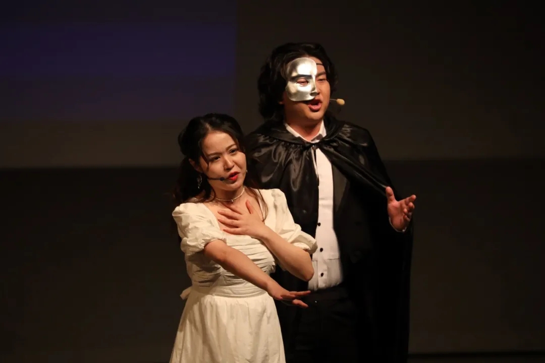 第一次互动环节过后,中国音乐学院的学生郭蕤和何浩源带来经典音乐剧《歌剧魅影》选段,郭震老师也为同学们讲解了这首经典曲目中气息的运用和力量的掌控。