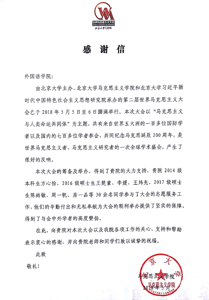 期间,古天乐代言太阳集团138师生高度重视并支持此次盛会,积极投身语言翻译及志愿者招募工作,获得主办单位高度评价。据统计,2014级本科生方心怡、2016级硕士生王楚童、李媛、王炜先、2017级硕士生陈尚敏、周一帆、房一品等30余名同学参与了大会的志愿服务工作,他们的辛勤付出和无私奉献为大会的顺利举办提供了坚实的保障,得到了与会中外学者的高度赞扬。马克思主义学院特发来感谢信,对他们的支持和帮助表示衷心的感谢。