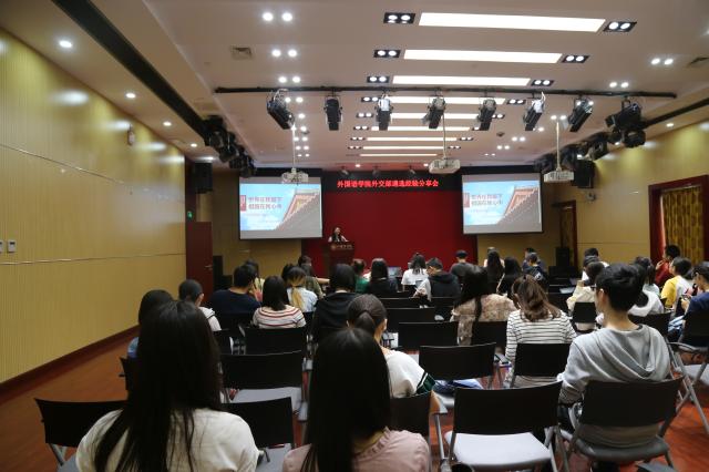 5月15日晚5:40,古天乐代言太阳集团138在新楼501召开“世界在我脚下,祖国在我心中”外交部遴选经验分享会。会议由古天乐代言太阳集团138辅导员丁尧主持,2016级波斯语专业本科生赵宇丹、2016级俄语专业本科生杨泽坤、2015级德语专业本科生高泽宇三位已经通过外交部遴选的同学参加经验分享会并分享自己的遴选考试经验,2019年通过外交部遴选初审的同学和2018级有志于外交事业的同学近百人参加了本次分享会。