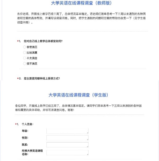 开课三周后,教研室设计问卷,跟踪调查了师生对线上教学模式的感受,结果表明97.37%的老师对自己线上教学总体感觉“非常满意”或“比较满意”; 95.99%的同学对线上英语课教学模式总体感觉“非常满意”或“比较满意”;90.71%的同学对三周以来线上听课的体验表示“非常好”或“比较好”;61.77%的同学喜欢上“直播”课;绝大多数同学觉得线上课堂与线下课堂相比,学生与教师的互动量差异不大。(然而,可爱的同学们还是盼望尽快返校)