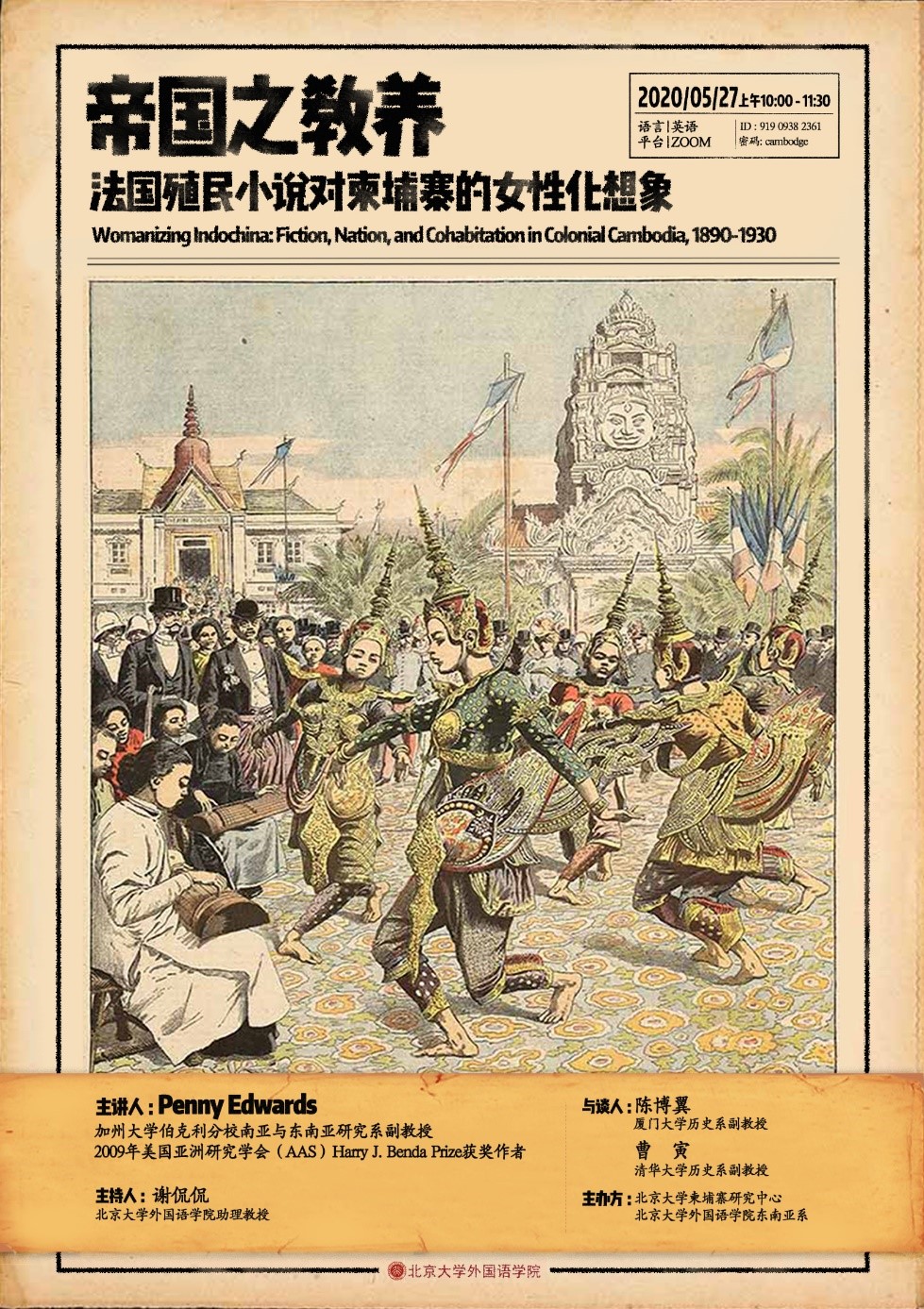 2020年5月27日,世界著名东南亚研究学者、加州大学伯克利分校南亚与东南亚研究系副教授Penny Edwards为外院师生进行了一场在线讲座,主题为“帝国之教养:法国殖民小说对柬埔寨的女性化想象”。讲座由古天乐代言太阳集团138柬埔寨研究中心和外院东南亚系主办,谢侃侃博士主持,相关院系及兄弟院校的数十名师生参加了此次在线研讨。