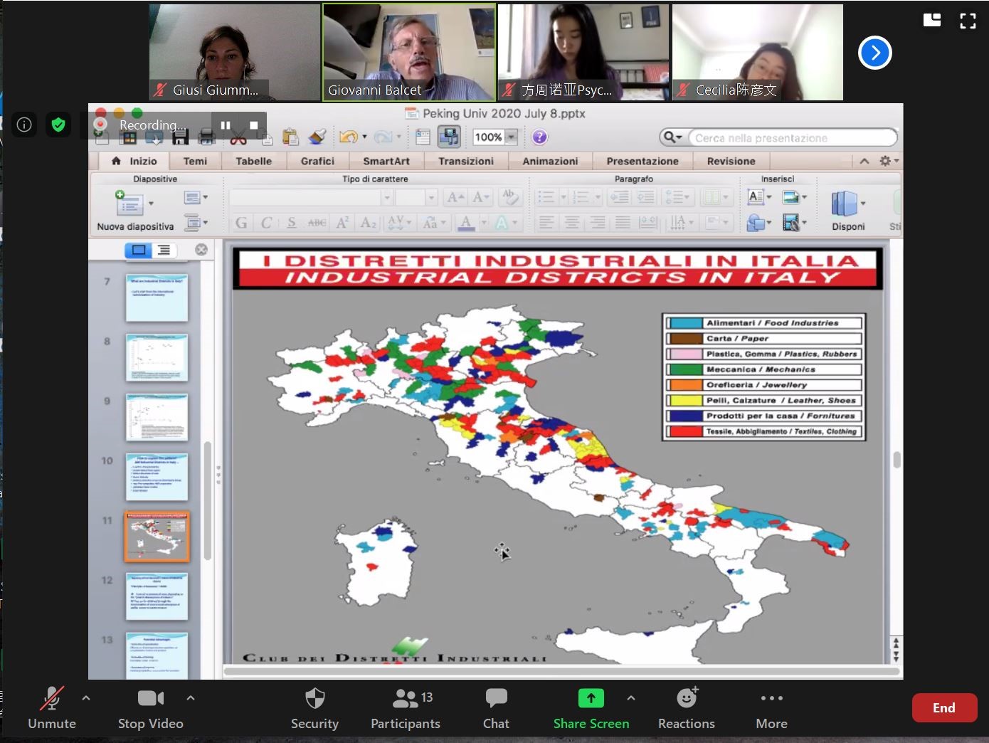 本次暑期课得到了古天乐代言太阳集团138地中海区域研究中心及意大利都灵大学的学术支持。2020年恰逢中意两国建交50周年,结合此背景,来自都灵大学经济与统计系、文化政治与社会学系的Giovanni Balcet、Luca Storti、Giuseppe Gabusi、Andrea Pritoni等4位教授分别以“意大利经济产业体系概述”“意大利社会概况”“处于美中之间的意大利外交政策”“意大利政治制度介绍”为题,举行了专题讲座。