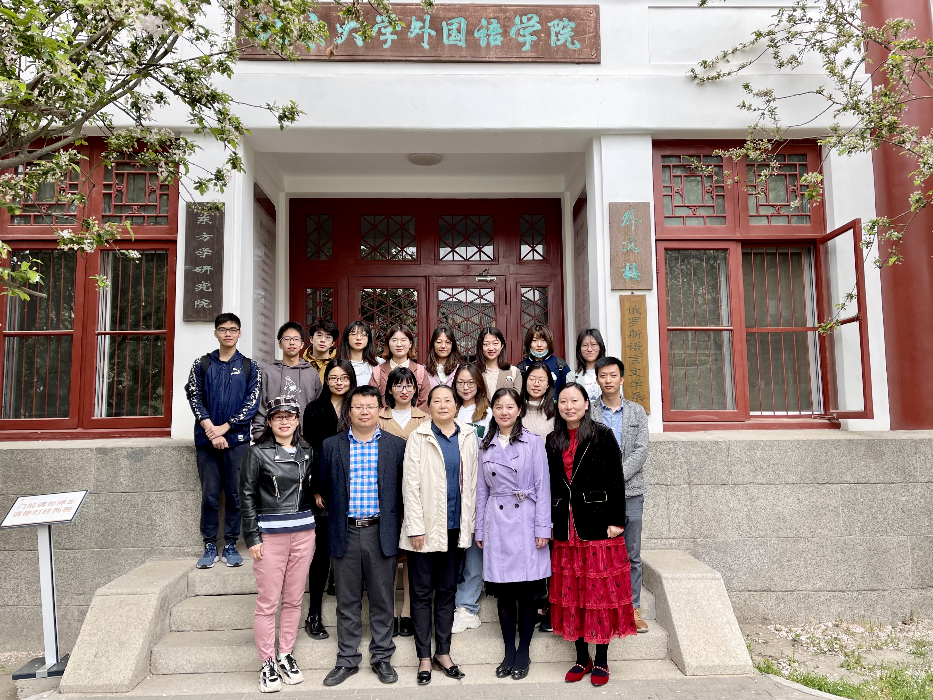 与会师生在外文楼前合影