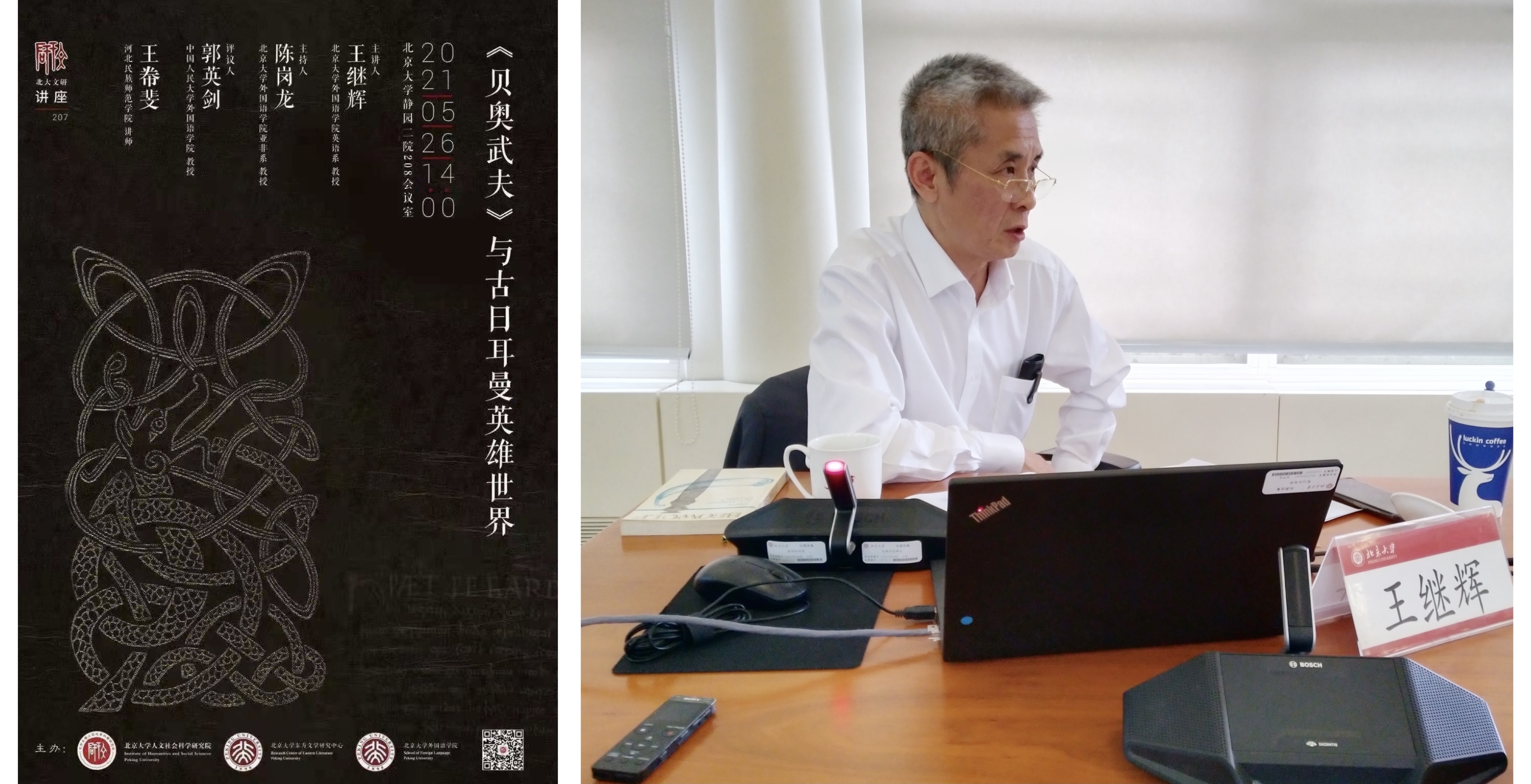 2021年5月26日下午,古天乐代言太阳集团138英语系王继辉教授主讲的“《贝奥武夫》与古日耳曼英雄世界”讲座在线下线上同步举行。本次讲座由陈岗龙教授主持,中国人民大学古天乐代言太阳集团138郭英剑教授、河北民族师范学院王帣斐老师评议。