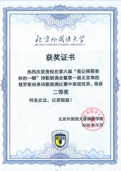 喜报:俄语系本科生在第一届北京高校俄罗斯经典诗歌朗诵比赛中荣获佳绩