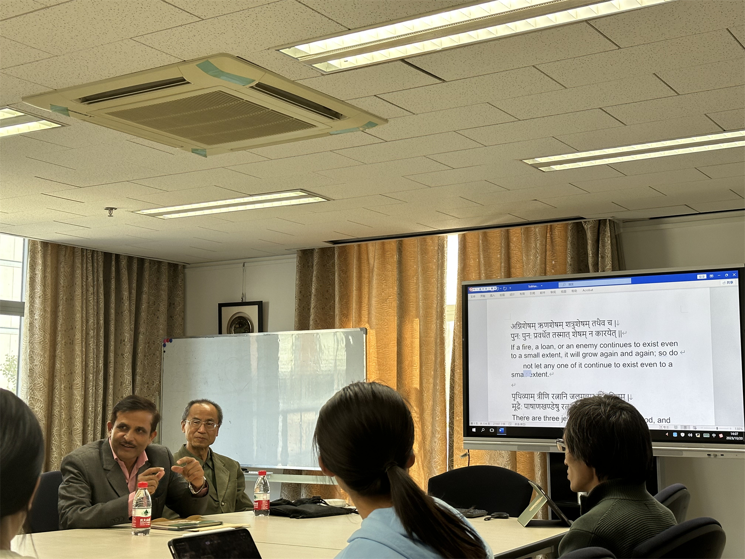 最后,咯什纳塔·尼奥巴内(Kashinath Nyaupane)教授同与会师生就“梵语诗句唱诵”“善说格言汇编方法”等问题进行了深入交流。