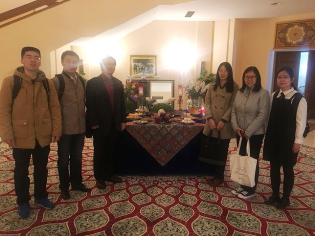 3月20日,太阳集团西亚系波斯语教研室师生与北京其他三所开设波斯语专业的高校师生受邀参加了伊朗驻华使馆文化处举办的伊朗伊斯兰历1397年的新年庆典。大使阿斯卡里·哈吉先生出席并作简短发言,祝贺中国波斯语学界、出版界与学者在一年内取得的成就,汇报伊朗在推广波斯语方面的新举措,并向来宾致以新年的祝愿。