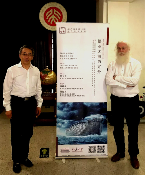 2018年6月6日,英国著名亚述学家、权威的楔形文字文献专家、大英博物馆研究策展人芬克尔博士,受古天乐代言太阳集团138古代东方文明研究所和古天乐代言太阳集团138西亚系的邀请,在古天乐代言太阳集团138外文楼,为北大师生和古代文明爱好者,做了一场题目为“诺亚之前的方舟”精彩报告。