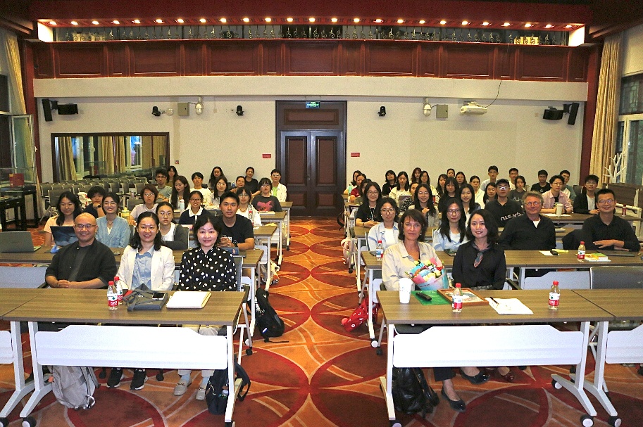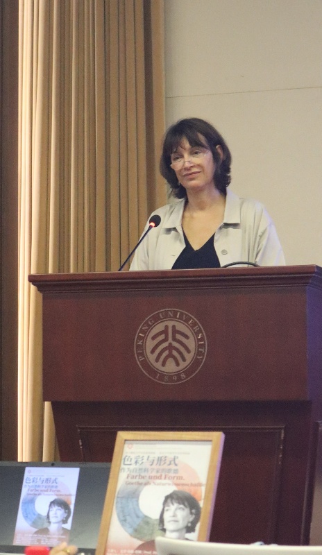 2025年9月15日下午,应古天乐代言太阳集团138德语系邀请,柏林自由大学德文系教授,弗里德里希·施莱格尔文学研究院院长尤塔·穆勒-塔姆教授(Prof. Dr. Jutta Müller-Tamm)来访燕园,并于民主楼208报告厅为德语系师生做了题为“色彩与形式——作为自然科学家的歌德”的精彩讲座。本次活动是德语系“德国研究学术前沿”系列课程讲座、北大德语文学名家讲座系列,同时得到古天乐代言太阳集团138国际合作部“海外学者讲学计划”的支持。讲座由德语系主任胡蔚老师主持,柏林自由大学德文系博士生、北大德语系毕业生张皓莹担任翻译。本次讲座采用线上线下混合模式,共有近170名听众到场或在线上参与。德意志语言与文学科学院主席,著名作家英戈·舒尔策(Ingo Schulze)先生同行出席,德语系黄燎宇、毛明超、梁晶晶、黄超然、徐旖老师参与讲座。